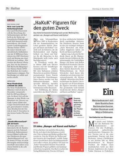 Das Hotel Schwärzler beteiligt sich an der Weihnachtsaktion von „Hunger auf Kunst und Kultur“.