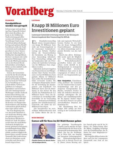 Lustenauer Gemeindevertretung stimmt in der Sitzung am Donnerstagabend über Voranschlag für 2019 ab.