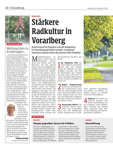Durch kreative Projekte soll die Radkultur in Vorarlberg gestärkt werden. Landesrat Johannes Rauch ehrte die besten fünf Projekte.