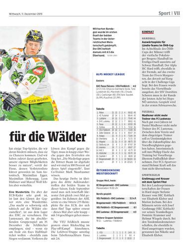 Der EC Bregenzerwald empfängt heute (19.30 Uhr) im Rahmen der österreichischen Meisterschaft den EHC Lustenau. VEU verliert Duell mit Fassa.