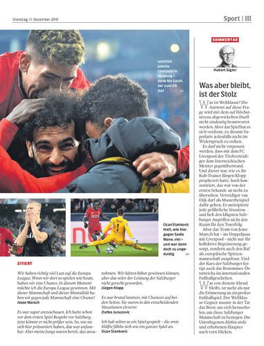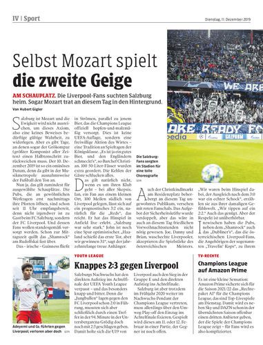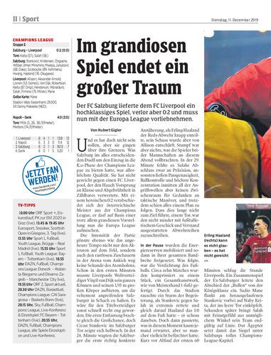 Champions League. 0:2 – Liverpool setzt den Träumen des FC Salzburg in der Champions League ein Ende. In einem fulminanten Spiel mit zahlreichen Chancen ist der Titelverteidiger am Ende einfach besser. Sportteil APA