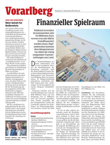 Feldkirch investiert im kommenden Jahr 9,4 Millionen Euro, wovon etwa die Hälfte fremdfinanziert werden muss. Kopfzerbrechen bereiten dem Bürgermeister vor allem die stetig steigenden Transferzahlungen ans Land.