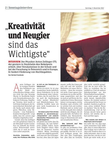 Interview. Der Physiker Anton Zeilinger (77), der gestern in Stockholm den Nobelpreis erhielt, über Versäumnisse in der Schule und bei der Forschung in Österreich und in Europa. Er fordert Förderung von Hochbegabten. Von Norbert Swoboda