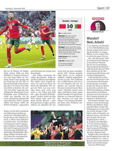 Marokko holt einen 1:0-Sieg gegen Portugal. Damit zogen die „Löwen vom Atlas“ als erstes afrikanisches Team in ein WM-Halbfinale ein.