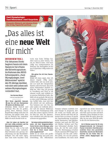 Interview Teil 1. Für Johannes Strolz beginnt heute mit dem Slalom in Val-d‘Isère die Skiweltcupsaison. Im Rahmen des NEUE-Schwerpunkts „Zwei Olympiasieger, zwei Blickwinkel“ spricht der 29-Jährige darüber, wie sich sein Leben seit seinen Olympiasiegen verändert hat.