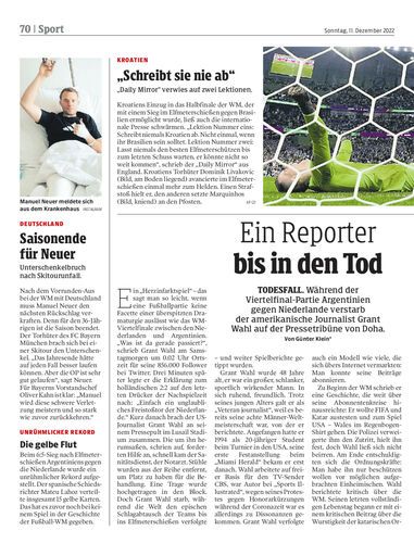 TODESFALL. Während der Viertelfinal-Partie Argentinien gegen Niederlande verstarb der amerikanische Journalist Grant Wahl auf der Pressetribüne von Doha. Von Günter Klein*