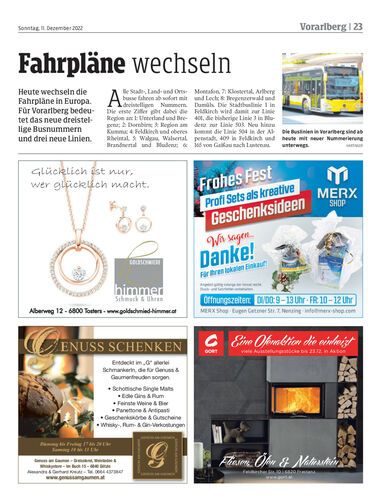 Heute wechseln die Fahrpläne in Europa. Für Vorarlberg bedeutet das neue dreistellige Busnummern und drei neue Linien.