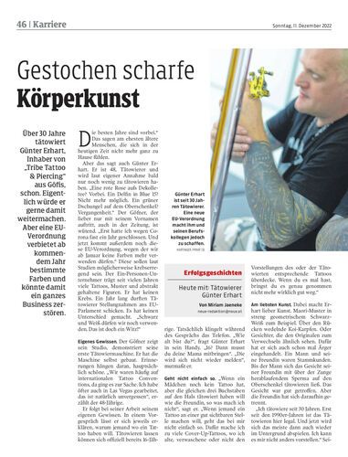 Über 30 Jahre tätowiert Günter Erhart, Inhaber von „Tribe Tattoo & Piercing“ aus Göfis, schon. Eigentlich würde er gerne damit weitermachen. Aber eine EU-Verordnung verbietet ab kommendem Jahr bestimmte Farben und könnte damit ein ganzes Business zerstören.