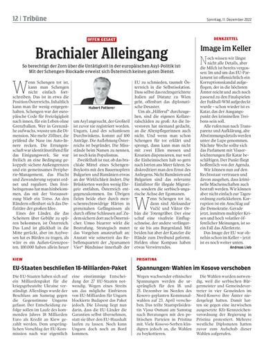 So berechtigt der Zorn über die Untätigkeit in der europäischen Asyl-Politik ist: Mit der Schengen-Blockade erweist sich Österreich keinen guten Dienst.