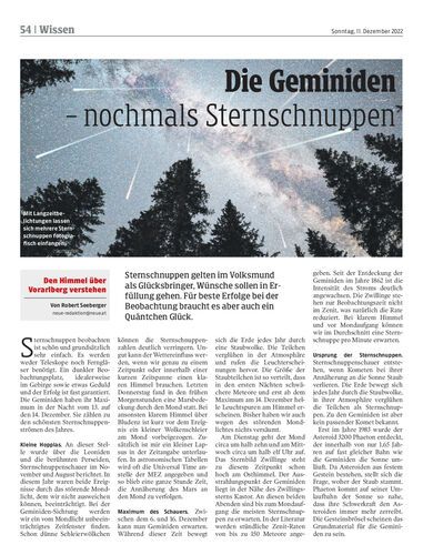 Sternschnuppen gelten im Volksmund als Glücksbringer, Wünsche sollen in Erfüllung gehen. Für beste Erfolge bei der Beobachtung braucht es aber auch ein Quäntchen Glück.