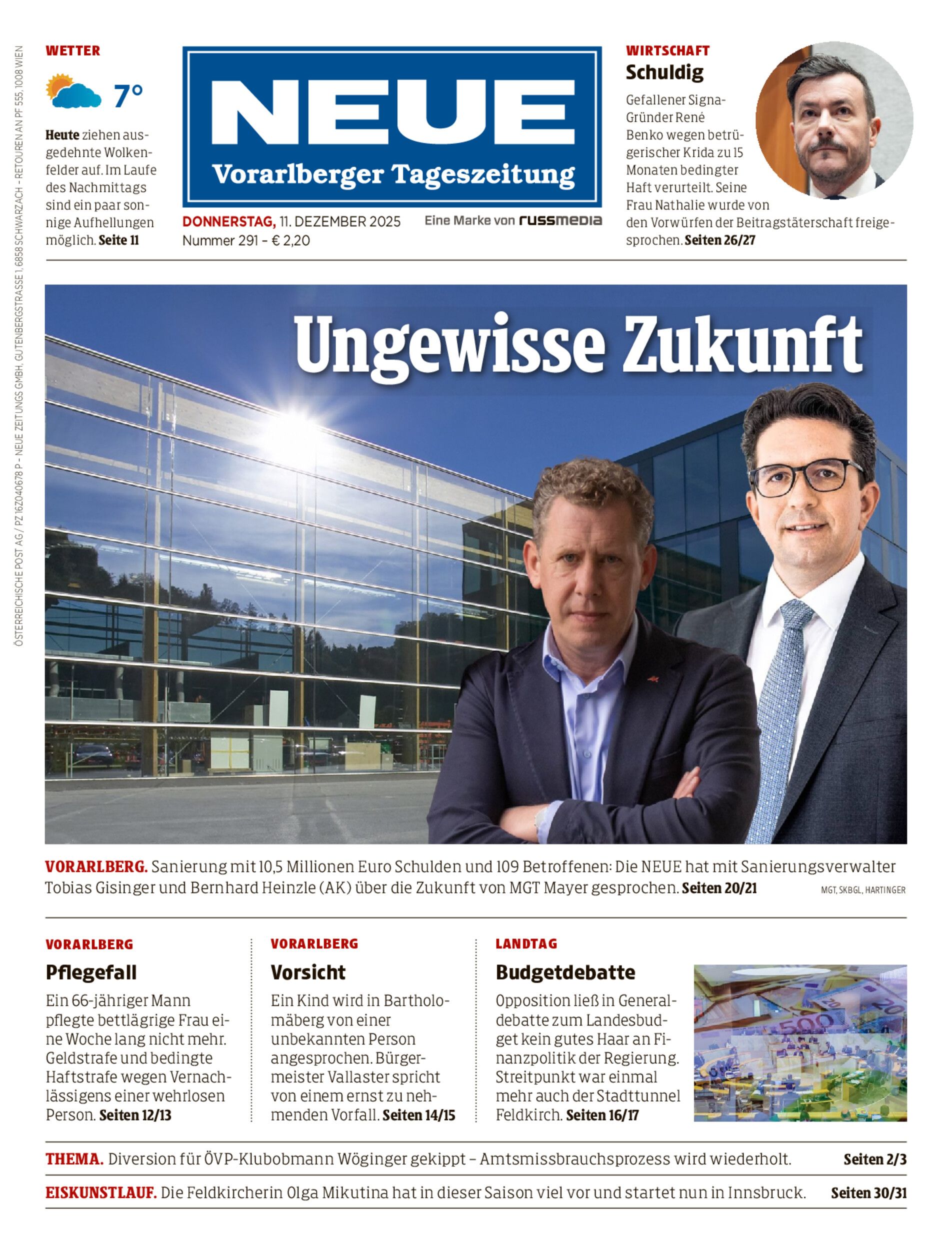 Über MGT Mayer Glastechnik ist ein Sanierungsverfahren eröffnet worden. Die NEUE hat mit Sanierungsverwalter Tobias Gisinger und AK-Präsident Bernhard Heinzle gesprochen.