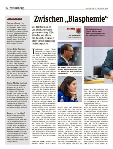 Bei der Diskussion um den Landesbudgetvoranschlag 2026 standen vor allem die Ausgaben für den Stadttunnel Feldkirch im Mittelpunkt.