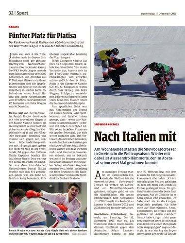 Der Rankweiler Pascal Platisa vom KC Götzis erreichte bei der WKF Youth League in Jesolo den fünften Gesamtrang.