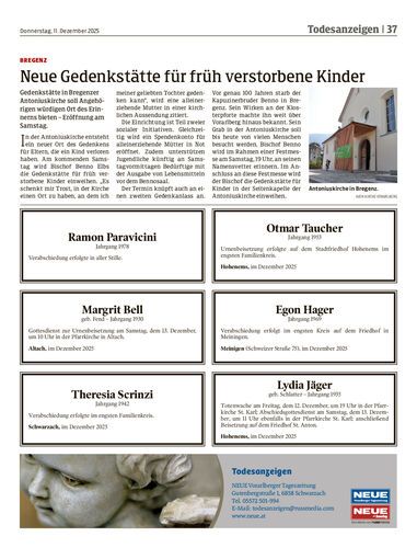 Gedenkstätte in Bregenzer Antoniuskirche soll Angehörigen würdigen Ort des Erinnerns bieten – Eröffnung am Samstag.