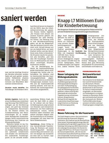 Der Bregenzer Stadtrat hat umfangreiche Fördermittel für private Kinderbetreuungseinrichtungen beschlossen.