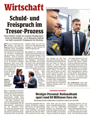 Weniger Personal: Nationalbank spart rund 80 Millionen Euro ein