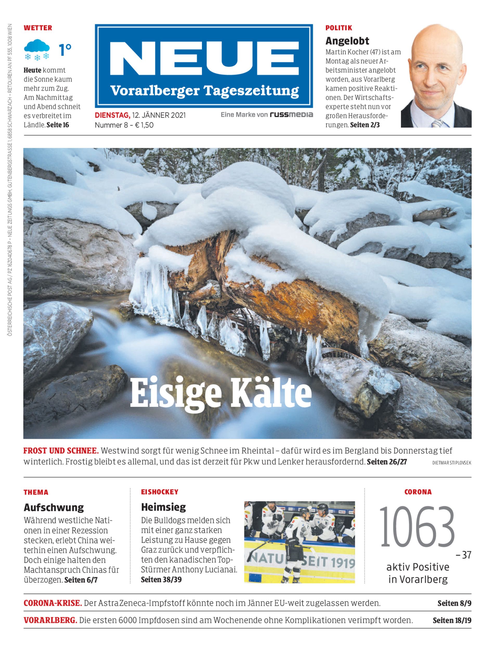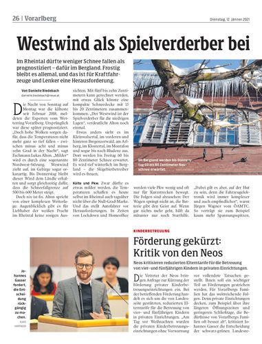 Frost und Schnee. Westwind sorgt für wenig Schnee im Rheintal – dafür wird es im Bergland bis Donnerstag tief winterlich. Frostig bleibt es allemal, und das ist derzeit für Pkw und Lenker herausfordernd. Seiten 26/27 Dietmar Stiplovsek
