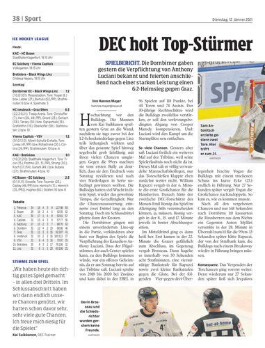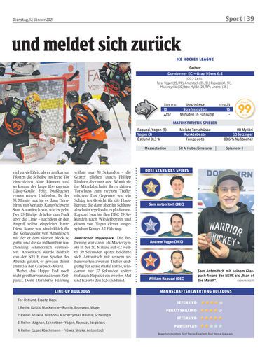 Spielbericht. Die Dornbirner gaben gestern die Verpflichtung von Anthony Luciani bekannt und feierten anschließend nach einer starken Leistung einen 6:2-Heimsieg gegen Graz.