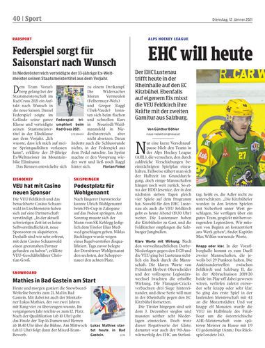 Der EHC Lustenau trifft heute in der Rheinhalle auf den EC Kitzbühel. Ebenfalls auf eigenem Eis misst die VEU Feldkirch ihre Kräfte mit der zweiten Garnitur aus Salzburg.