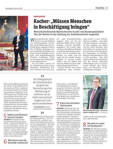 Wirtschaftsforscher Martin Kocher wurde von Bundespräsident Van der Bellen in der Hofburg als Arbeitsminister angelobt.