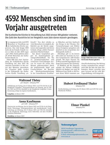 Die katholische Kirche in Vorarlberg hat 2022 erneut Mitglieder verloren. Die Zahl der Austritte ist im Vergleich zum Jahr davor massiv gestiegen.