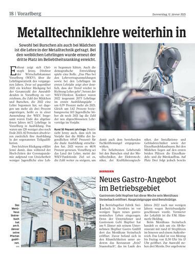 Sowohl bei Burschen als auch bei Mädchen ist die Lehre in der Metalltechnik gefragt. Bei den weiblichen Lehrlingen wurde erneut der dritte Platz im Beliebtheitsranking erreicht.