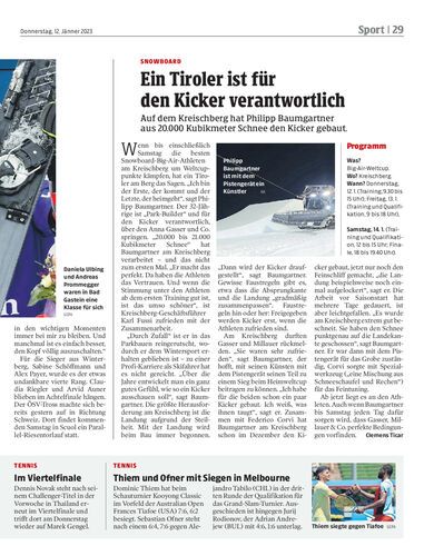 Auf dem Kreischberg hat Philipp Baumgartner aus 20.000 Kubikmeter Schnee den Kicker gebaut.