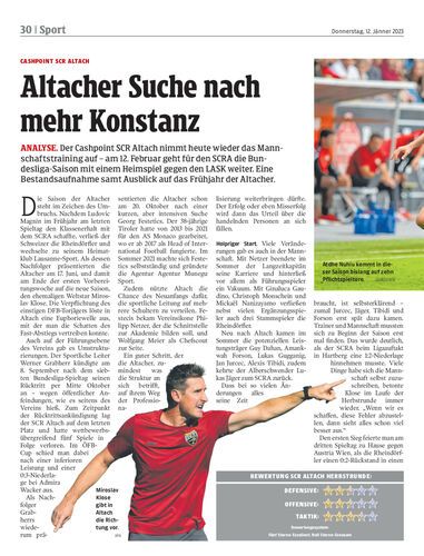 Analyse. Der Cashpoint SCR Altach nimmt heute wieder das Mannschaftstraining auf – am 12. Februar geht für den SCRA die Bundesliga-Saison mit einem Heimspiel gegen den LASK weiter. Eine Bestandsaufnahme samt Ausblick auf das Frühjahr der Altacher.
