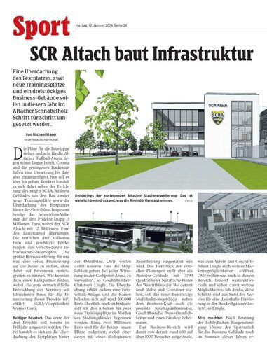 Eine Überdachung des Festplatzes, zwei neue Trainingsplätze und ein dreistöckiges Business-Gebäude sollen in diesem Jahr im Altacher Schnabelholz Schritt für Schritt umgesetzt werden.