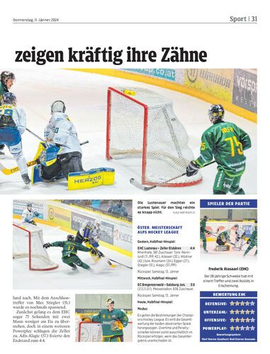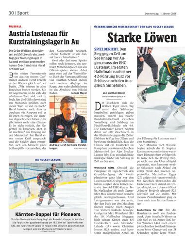 Spielbericht. Den Sieg gegen Zell am See knapp vor Augen, muss der EHC Lustenau im ersten Halbfinale nach einer 4:2-Führung kurz vor Schluss noch den Ausgleich hinnehmen.