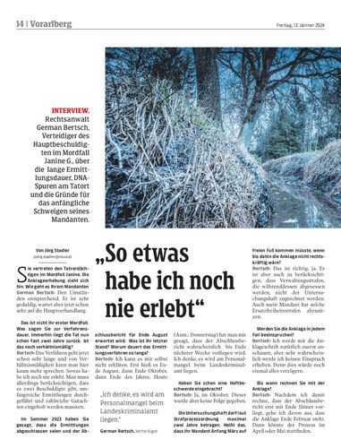 Interview. Rechtsanwalt German Bertsch, Verteidiger des Hauptbeschuldigten im Mordfall Janine G., über die lange Ermittlungsdauer, DNA-Spuren am Tatort und die Gründe für das anfängliche Schweigen seines Mandanten.