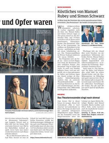 In Wien fand die Premiere des ersten gemeinsamen Kabarettstücks „Das Restaurant“ der beiden Schauspieler statt.