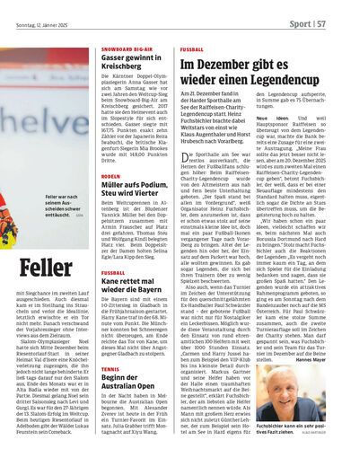 Am 21. Dezember fand in der Harder Sporthalle am See der Raiffeisen-Charity-Legendencup statt. Heinz Fuchsbichler brachte dabei Weltstars von einst wie Klaus Augenthaler und Horst Hrubesch nach Vorarlberg.