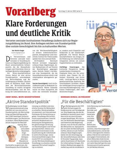 Vertreter zentraler Institutionen Vorarlbergs äußern sich zur Regierungsbildung im Bund. Ihre Anliegen reichen von Standortpolitik über soziale Gerechtigkeit bis hin zu kulturellen Werten.