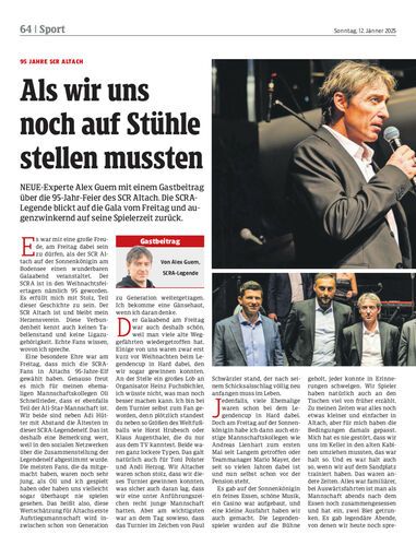 NEUE-Experte Alex Guem mit einem Gastbeitrag über die 95-Jahr-Feier des SCR Altach. Die SCRA-Legende blickt auf die Gala vom Freitag und augenzwinkernd auf seine Spielerzeit zurück.