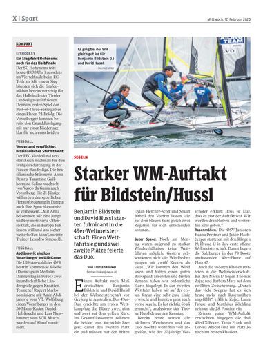 Benjamin Bildstein und David Hussl starten fulminant in die 49er-Weltmeisterschaft. Einen Wettfahrtsieg und zwei zweite Plätze feierte das Duo.