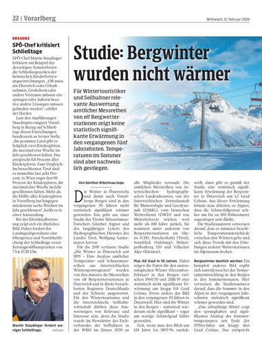 Für Wintertouristiker und Seilbahner relevante Auswertung amtlicher Messreihen von elf Bergwetterstationen zeigt keine statistisch signifikante Erwärmung in den vergangenen fünf Jahrzehnten. Temperaturen im Sommer sind aber nachweislich gestiegen.