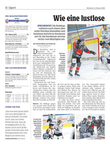 Spielbericht. Die Bulldogs verlieren nach einem über weite Strecken blamablen und herzlosen Auftritt in Innsbruck mit 3:6. Die Dornbirner setzten nichts vom Matchplan um.