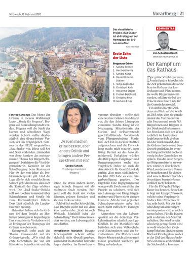 Auf der Liste der Bregenzer Grünen stehen 36 Frauen und 36 Männer. Als Spitzenkandidatin geht Sandra Schoch ins Rennen. Sie möchte künftig als Bürgermeisterin die Stadt gestalten.