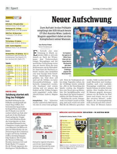 Zum Auftakt in das Frühjahr empfängt der SCR Altach heute (17 Uhr) Austria Wien. Ludovic Magnin appelliert dabei an das Kämpferherz seiner Mannen.
