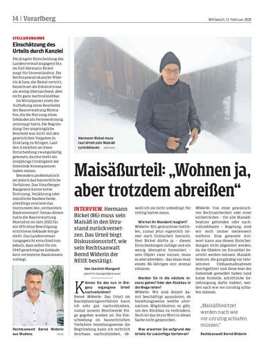 Interview. Hermann Bickel (86) muss sein Maisäß in den Urzustand zurückversetzen. Das Urteil birgt Diskussionsstoff, wie sein Rechtsanwalt Bernd Widerin der NEUE bestätigt.