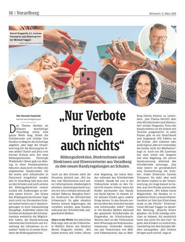 Bildungsdirektion, Direktorinnen und Direktoren und Elternvertreter aus Vorarlberg zu den neuen Handyregelungen an Schulen.