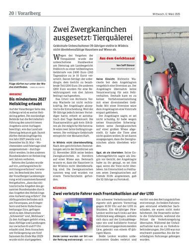 Geldstrafe: Unbescholtener 39-Jähriger stellte in Wildnis nicht überlebensfähige Haustiere auf Wiese ab.