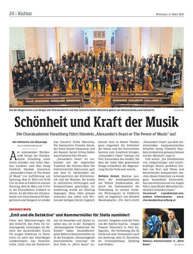 Die Chorakademie Vorarlberg führt Händels „Alexander’s Feast or The Power of Music“ auf.