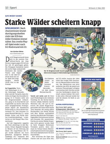 Spielbericht. Nach chancenlosen Grunddurchgangsduellen rückt der ECB den Zeller Eisbären immer näher. Das zweite Play-off-Spiel endet nach 0:2-Rückstand mit 2:3.