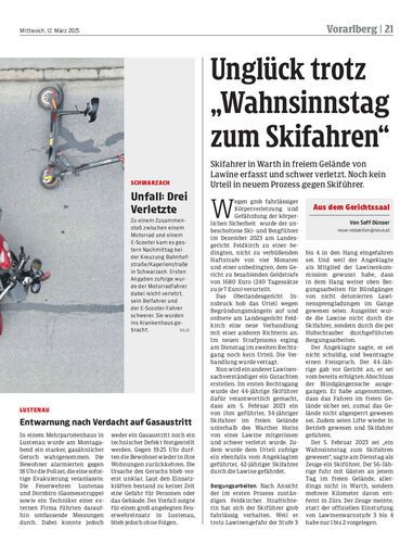 Skifahrer in Warth in freiem Gelände von Lawine erfasst und schwer verletzt. Noch kein Urteil in neuem Prozess gegen Skiführer.