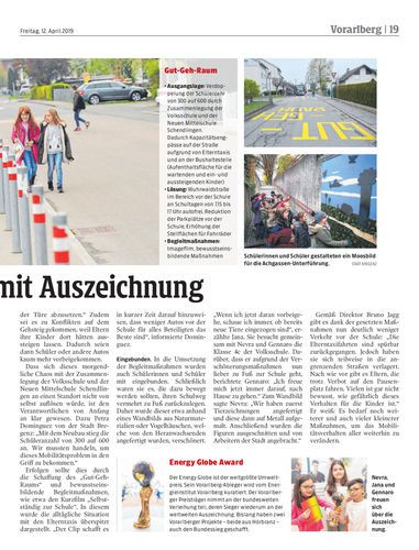 Die Stadt Bregenz ist für ihren „Gut-Geh-Raum“ vor dem Schulcampus Schendlingen mit dem Energy Globe Award 2019 ausgezeichnet worden.