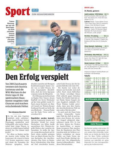 Vor 2100 Zuschauern trennen sich Austria Lustenau und die WSG Wattens in der Erste Liga 2:2. Die spielstarken Hausherren vergeben viele Chancen und machen entscheidende Fehler.