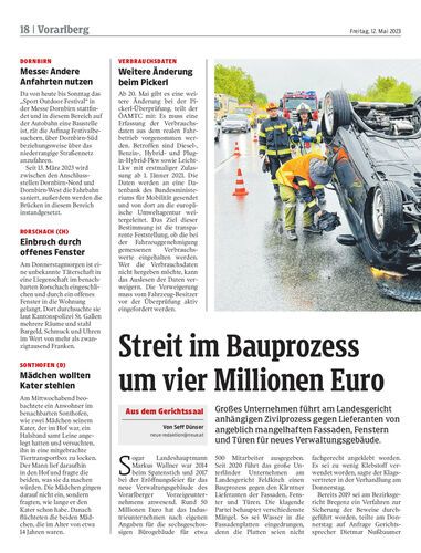 Großes Unternehmen führt am Landesgericht anhängigen Zivilprozess gegen Lieferanten von angeblich mangelhaften Fassaden, Fenstern und Türen für neues Verwaltungsgebäude.
