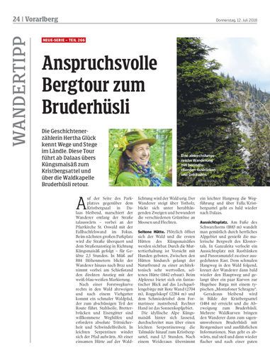 Die Geschichtenerzählerin Hertha Glück kennt Wege und Stege im Ländle. Diese Tour führt ab Dalaas übers Küngsmaisäß zum Kristbergsattel und über die Waldkapelle Bruderhüsli retour.